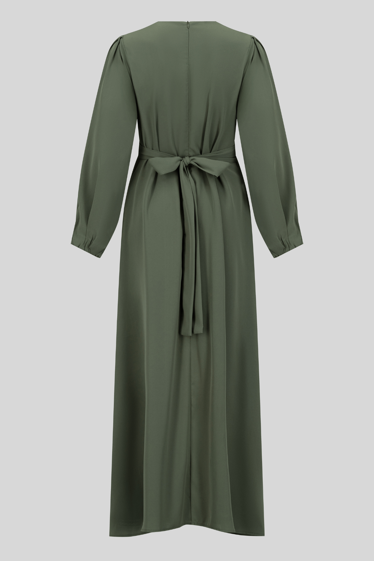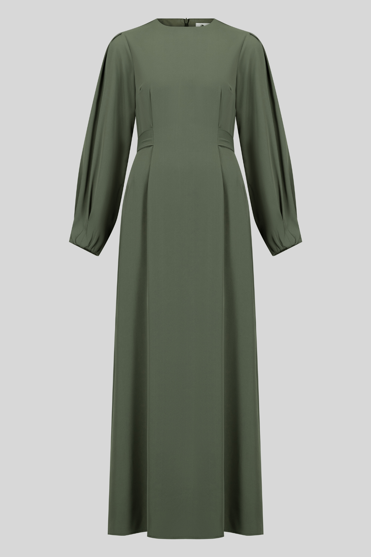 Classic Queen Sleeves Crepe Maxi Dress - Green