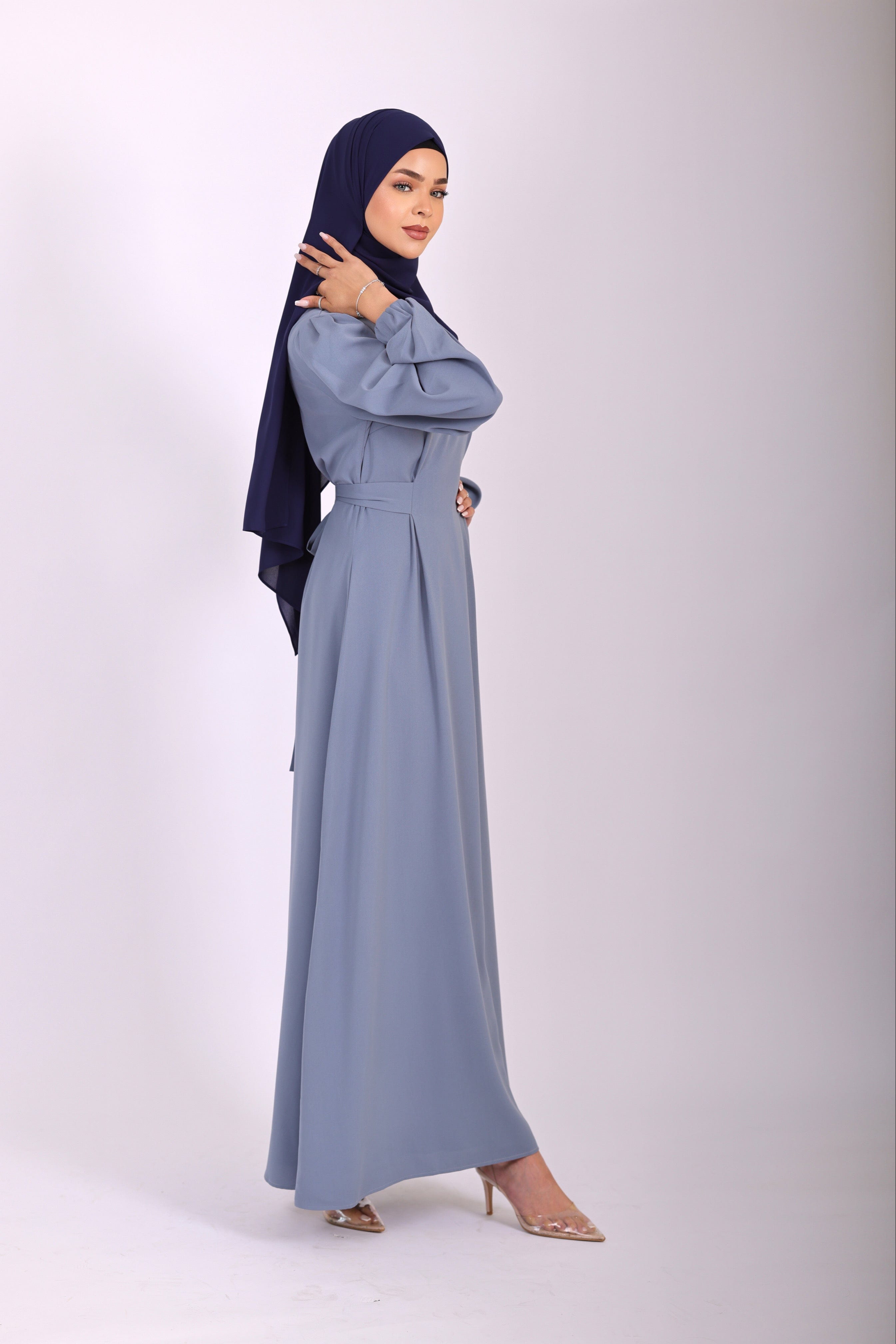 High-Quality Linen Maxi Dress with Hidden Front Buttons – Bright Blue