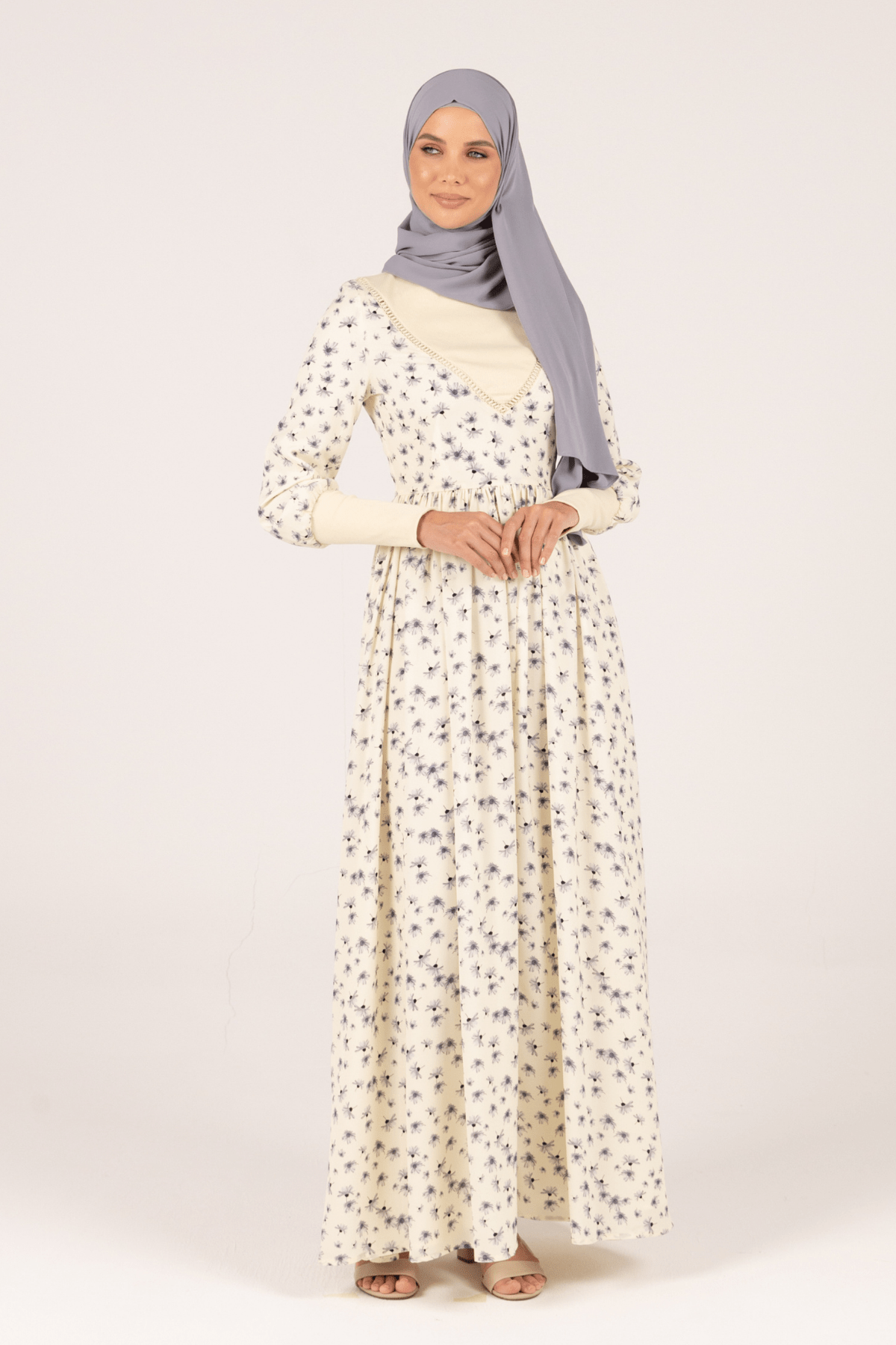Dream Purple Flowers Chiffon V-shape Maxi Dress - Beige