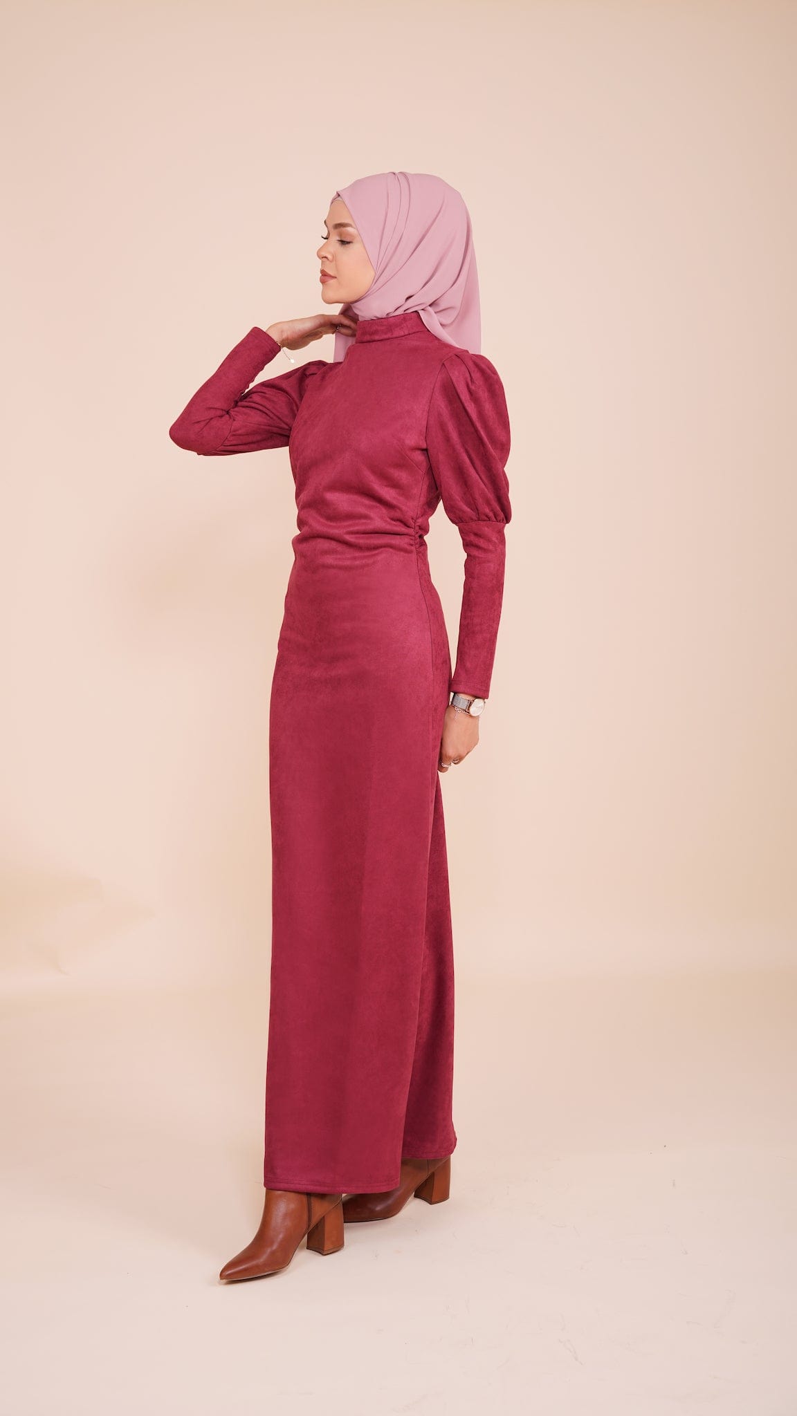 High Quality Maxi Suede Dress - Maroon Red
