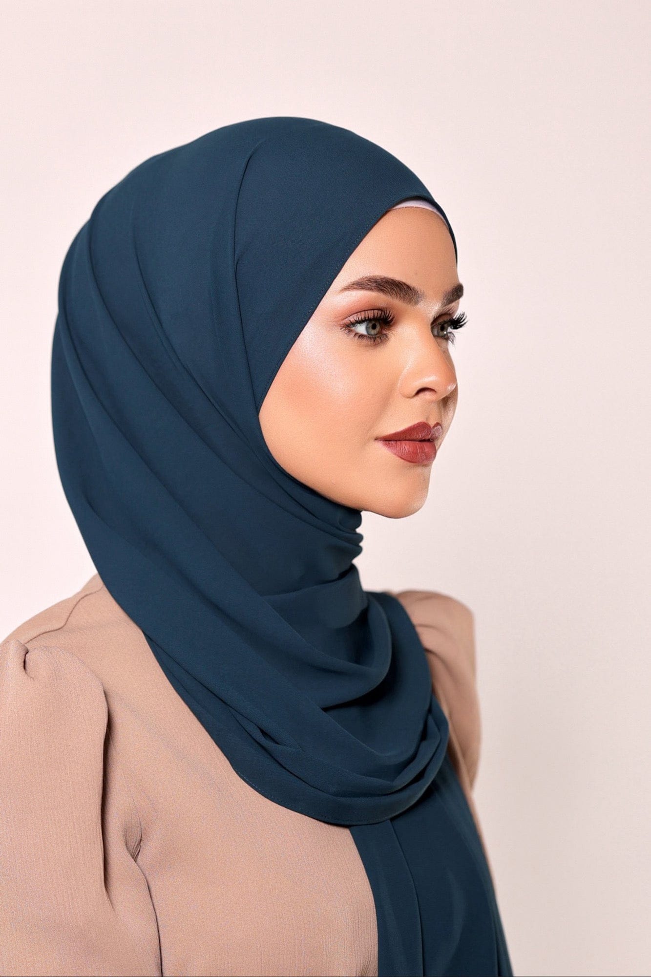 Luxury Crepe Chiffon Hijab - Aegean Blue